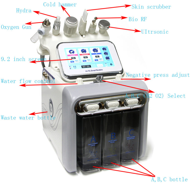Upgrade 6 in 1 Hydrogen Oxygen Small Bubble RF Beauty Instrument Face Lifting Dermabrasion Device Skin Scrubber Facial Spa